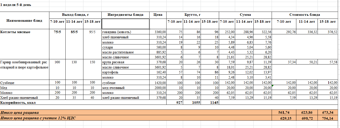 » 2022 жылдың 1-ші аптасының жұма күніне арналған ас мәзірі.