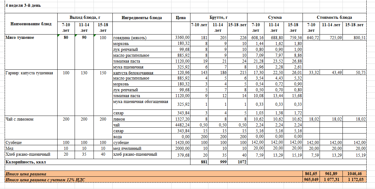 » 2022 жылдың 4 аптаның сәрсенбі күніне ас мәзірі.