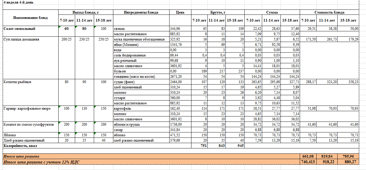 2022 жылдың 4 аптасының бейсенбі күніне ас мәзірі.