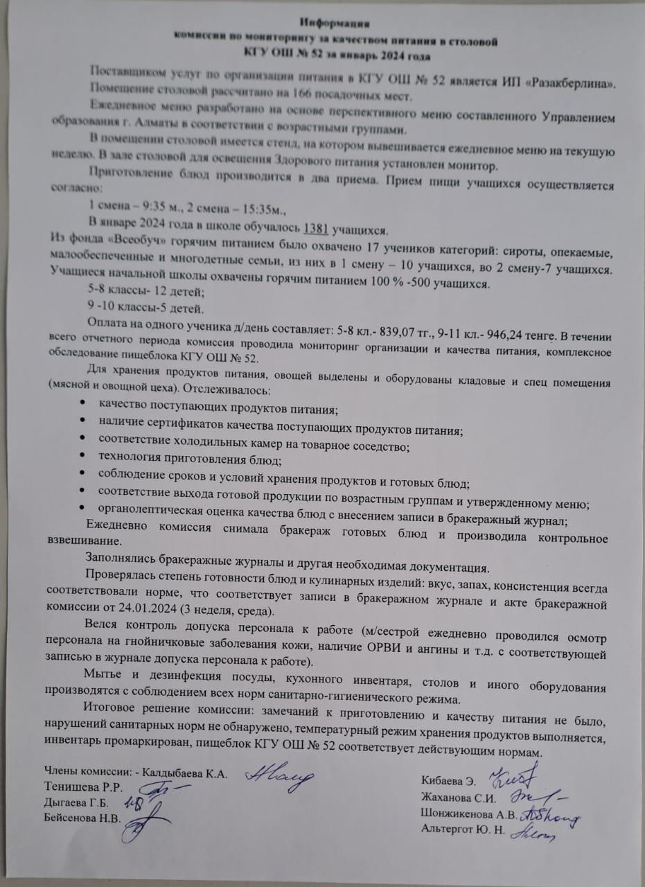 20 январь 2024 0 1 2 3 4 5 Информация комиссии по мониторингу качества питания в КГУОШ 52 январь 2024