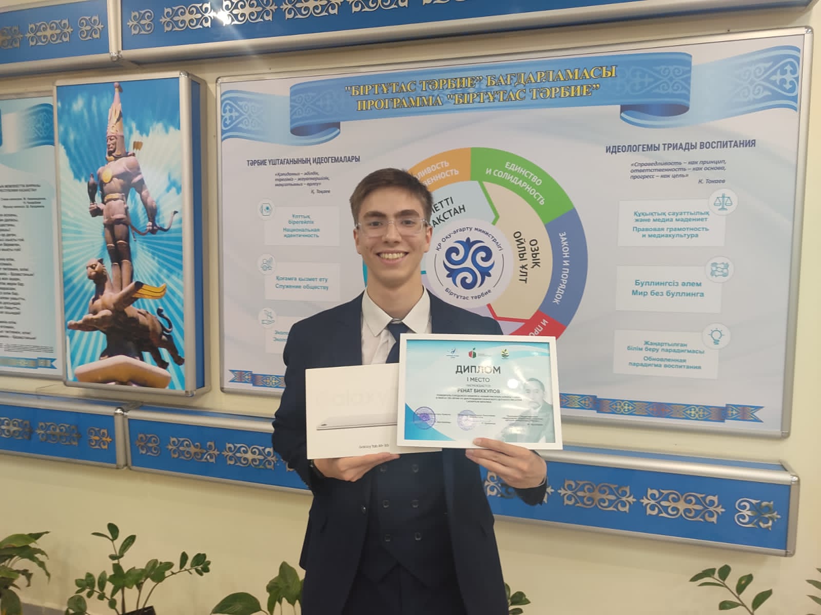 Биккулов Ренат ученик 11А класса, принял участие в конкурса "Юный писатель Алматы-25!" занял 1 место