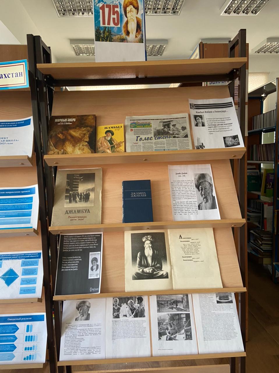 В библиотеке школы организована книжная выставка, посвященная 175-летию Жамбыла Жабаева.