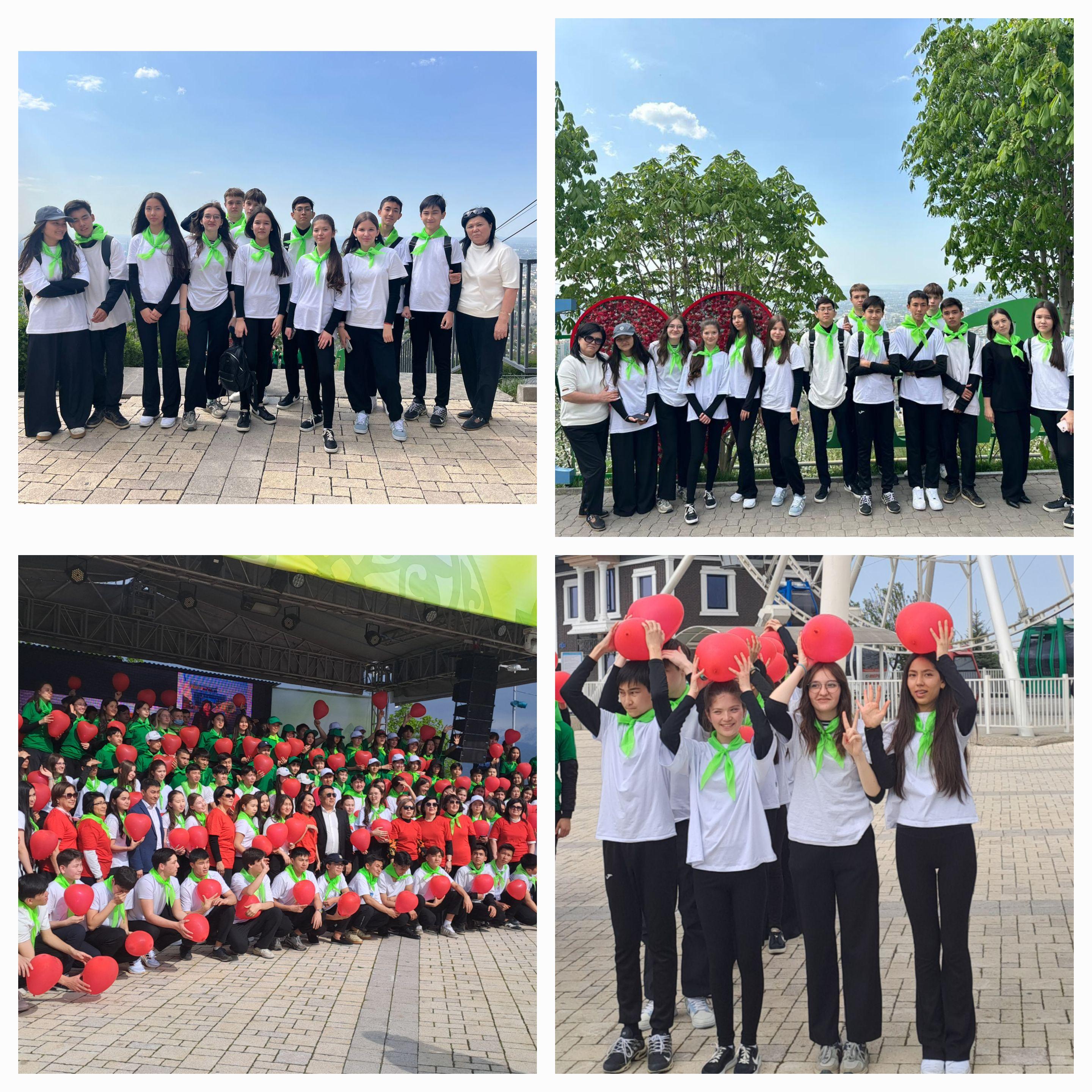 В поддержку кампании «Алматы-наш общий дом», в сердце города Алматы-на Коктобе прошла акция с участием учащихся Медеуского района. Цель акции-призвать горожан к любви Родине, городу.