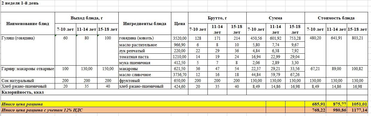 » Меню на понедельник (2 неделя 2022-2023 уч.года) Осень