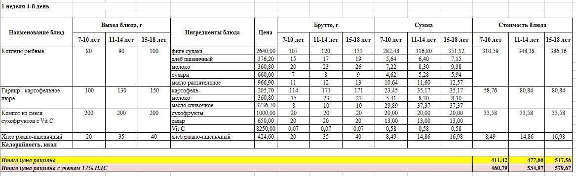 Меню на четверг (4 неделя 2022-2023 уч. года) Осень