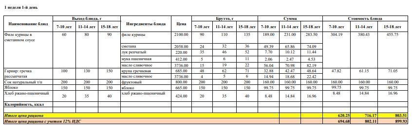 Меню на понедельник (1 неделя 2022-2023 уч. года)