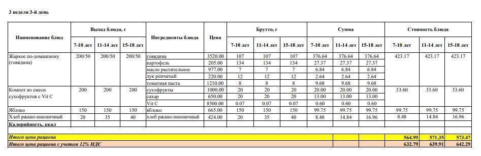 Меню на среду (3 неделя 2022-2023 уч. года)