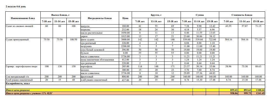 Меню на четверг (4 неделя 2022-2023 уч. года)