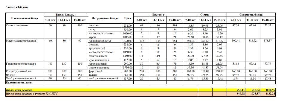 Меню на понедельник (1 неделя 2022-2023 уч. года)