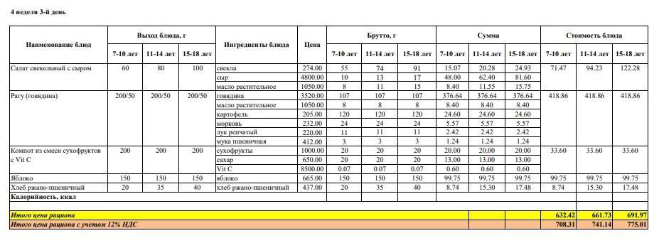 Меню на среду (4 неделя 2022-2023 уч. года)