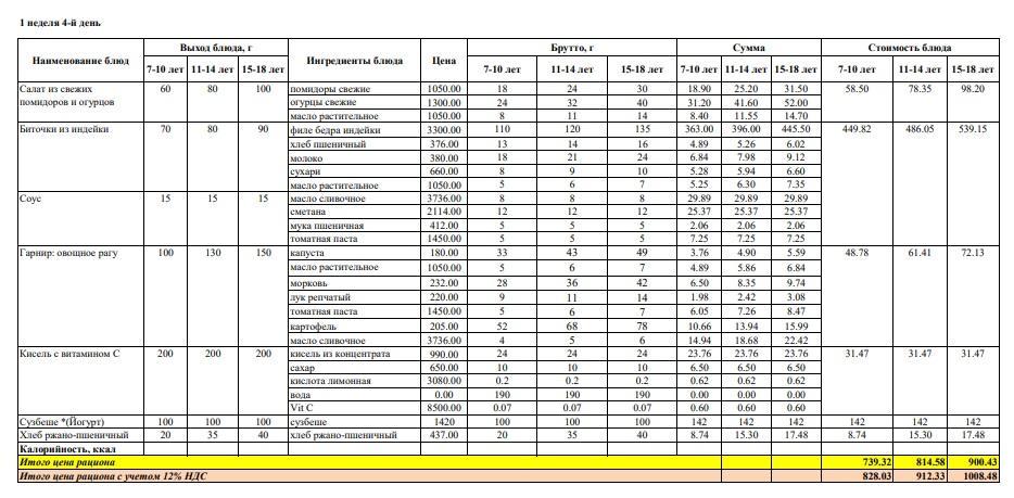 Меню на четверг (4 неделя 2022-2023 уч. года)
