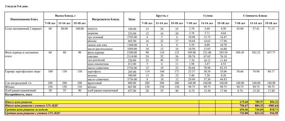 Меню на пятницу (3 неделя 2022-2023 уч. года)
